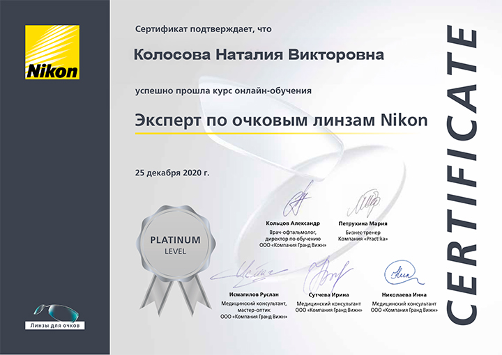- Эксперт по очковым линзам Nikon Обучение предоставило знания по последним разработкам линз для очков, включая их применение для коррекции сложных зрительных нарушений.